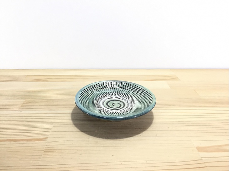 3寸皿 薄青飛び鉋 【小鹿田焼】